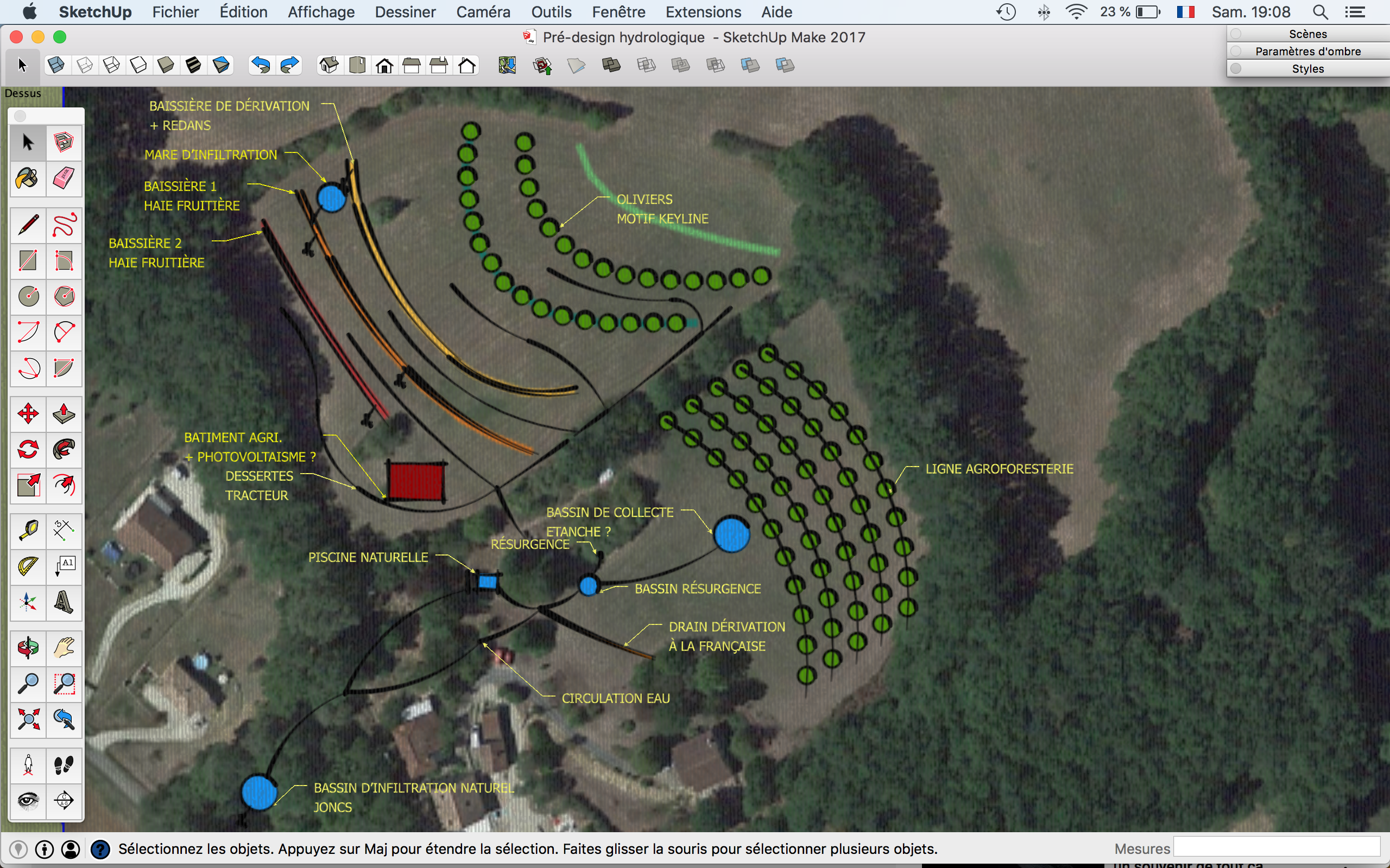 – Implanter les divers éléments avec intelligence (structures, vergers, potagers, animaux).